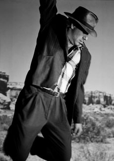 The migratory instinct is a powerful one. In 1955, photographer Robert Frank began a cross-country journey in search of the essence of American-ness for his project The Americans. Matthew Cohen’s large scale photograph Road Kill heeds the same call of the road, as a man standing in the foreground looks back at the long road he had just walked.